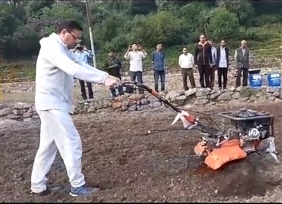 उत्तरकाशी। उत्तरकाशी दौरे के दूसरे दिन मुख्यमंत्री पुष्कर सिंह धामी आज सुबह ग्राम सिरोर, नेताला पहुंचे और ग्रामीणों से मुलाकात कर उनकी समस्याएं सुनी। इस दौरान उन्होंने खेतों की पावर वीडर से जुताई की आवर मंडुवा की बुवाई की। उन्होंने कहा कि राज्य में होने वाले श्रीअन्न उत्पादों को बढ़ावा देना सरकार की प्राथमिकता है। उन्होंने कहा कि गांव को आदर्श एवं सर्वश्रेष्ठ बनाने से ही सर्वश्रेष्ठ राज्य का सपना होगा पूरा होगा। उत्तरकाशी जिले के दौरे के दूसरे दिन की शुरुआत में मुख्यमंत्री श्री पुष्कर सिंह धामी ने रविवार को सीमांत विकासखंड भटवाड़ी के ग्राम सिरोर, नेताला में प्रातः काल भ्रमण किया। इस दौरान उन्होंने ग्राम वासियों से मुलाकात कर उनका कुशलक्षेम जाना। उन्होंने भागीरथी नदी से हो रहे कटाव के बारे में भी ग्राम वासियों से जानकारी ली।मुख्यमंत्री ने लोगों से सरकार की जन कल्याणकारी योजनाओं के संबंध में फीडबैक लिया। मुख्यमंत्री पुष्कर सिंह धामी ने विभिन्न कृषि उपकरणों के बारे में जानकारी लेते हुए आधुनिक उपकरणों को किसानों को ज्यादा से ज्यादा वितरित किए जाने की बात कही। उन्होंने खेतों में जीवामृत खाद, बीजामृत खाद का भी छिड़काव किया। साथ ही जीवामृत खाद, बीजामृत खाद के इस्तेमाल को खेतो में ज्यादा से ज्यादा बढ़ाए जाने की बात कही।मुख्यमंत्री पुष्कर सिंह धामी ने इस अवसर पर गांव में फलदार पौधों का रोपण भी किया। उन्होंने कहा कि बंजर भूमि में हम अधिक से अधिक फलदार पौधे लगाने चहिए। उन्होंने कहा प्रातः काल भ्रमण के दौरान ग्राम वासियों से मिलकर सरकार द्वारा किए जा रहे कार्यों का फीडबैक मिलता है। भ्रमण के दौरान विधायक सुरेश चौहान, जिलाधिकारी अभिषेक रूहेला, पुलिस अधीक्षक अर्पण यदुवंशी भी साथ रहे।