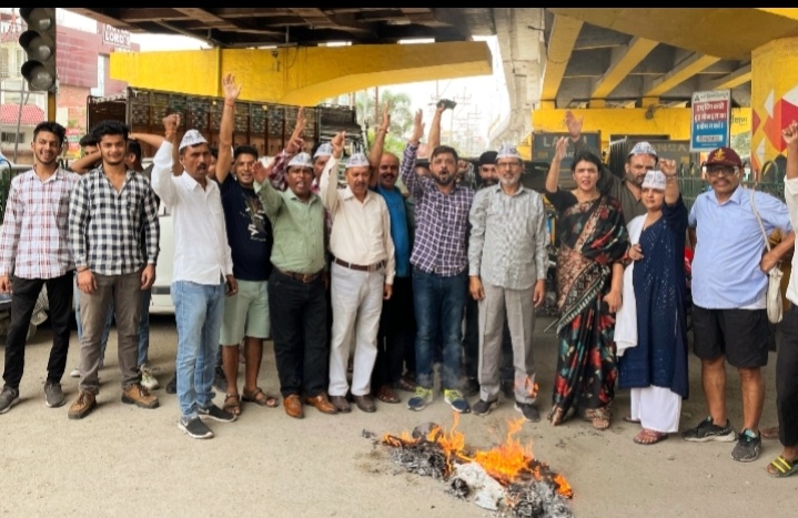 आम आदमी पार्टी ने फूंका सरकार का पुतला