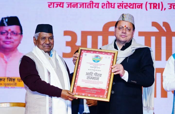 देहरादून। मुख्यमंत्री पुष्कर सिंह धामी ने उत्तराखण्ड जनजातीय महोत्सव में उत्तराखण्ड आदि गौरव सम्मान पुरस्कार – 2025 से लोक गायक नरेंद्र सिंह नेगी एवं किशन महिपाल को सम्मानित किया। इस दौरान मुख्यमंत्री ने जनजातीय शोध संस्थान के सफल संचालन के लिए जनजातीय शोध संस्थान के ढांचे को स्वीकृति प्रदान करने और जनजातीय युवक-युवतियों को आत्मनिर्भर बनाने तथा रोजगार की दिशा में काम करने हेतु मुख्यमंत्री जनजाति रोजगार उत्कर्ष योजना के संचालन के लिये प्रतिवर्ष 1 करोड़ रुपए की धनराशि दिए जाने की घोषणा की। मुख्यमंत्री ने देशभर के विभिन्न जनजाति समाज द्वारा बनाए गए उत्पादों पर आधारित स्टॉलों का भी अवलोकन किया। उन्होंने जनजातीय शोध संस्थान द्वारा किए गए कार्यों पर आधारित लघु फिल्म का भी अवलोकन किया। मुख्यमंत्री ने कहा कि जनजातीय महोत्सव, प्रदेश के सांस्कृतिक वैभव और जनजातीय परंपराओं को जीवंत रखने का प्रयास है। ऐसे आयोजनों से हमें जनजातीय समाज की समृद्ध परंपराओं को देखने, समझने और उनसे प्रेरणा लेने का अवसर मिलता है। उन्होंने कहा कि उत्तराखण्ड की भूमि प्राकृतिक सौंदर्य के साथ समृद्ध सांस्कृतिक विरासत के लिए भी जानी जाती है। हमारे राज्य में मुख्य रूप से थारू, भोटिया, जौनसारी राजी एवं वोक्सा जनजातियां निवास करती हैं। जिनकी परंपराएं, लोक कला, हस्तशिल्प, लोक गीत, नृत्य और खानपान हमारी संस्कृति को अद्वितीय पहचान देते हैं। राज्य सरकार उत्तराखण्ड में आदिवासी समाज के विकास के लिए रात-दिन कार्य करती रहेगी। उन्होंने कहा कि राज्य सरकार, उत्तराखण्ड के आदिवासी एवं जनजातीय समुदाय के कल्याण और उनके जीवन स्तर को बेहतर बनाने की दिशा में कार्य कर रही है। प्रधानमंत्री जनजातीय उन्नत ग्राम अभियान के अंतर्गत उत्तराखण्ड के 128 जनजातीय गांवों का चयन किया गया है। चयनित गांवों में बुनियादी सुविधाओं के विकास को बढ़ावा दिया जा रहा है। राज्य में 4 एकलव्य आदर्श आवासीय विद्यालय कालसी, मेहरावना, बाजपुर व खटीमा में संचालित हो रहे हैं, जिसमें जनजातीय समुदाय के छात्रों को निःशुल्क शिक्षा एवं हॉस्टल की सुविधा प्रदान की जाती है। जनजातीय समाज के बच्चों को प्राइमरी स्तर से स्नातकोत्तर स्तर तक छात्रवृत्ति प्रदान की जा रही है। शैक्षिक उत्थान एवं विकास हेतु सरकार द्वारा वर्तमान में 16 राजकीय आश्रम पद्धति विद्यालयों का संचालन किया जा रहा है। जनजाति के शिक्षित बेरोजगार युवक-युवतियों को तकनीकी शिक्षा प्रदान करने हेतु प्रदेश में तीन आई.टी.आई. संस्थानों का संचालन किया जा रहा है। प्रतियोगी परीक्षाओं की तैयारी के लिए कोचिंग की निःशुल्क व्यवस्था भी की गई है। मुख्यमंत्री ने कहा कि जनजातियां, प्रकृति के साथ सामंजस्य 
