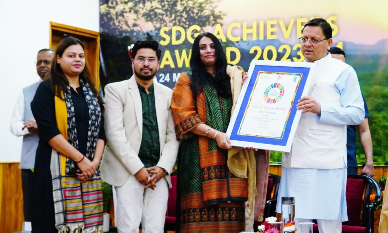 देहरादून। मुख्यमंत्री पुष्कर सिंह धामी ने सोमवार को मुख्यमंत्री आवास स्थित मुख्य सेवक सदन में एस.डी.जी एचीवर अवार्ड समारोह में 3 व्यक्तियों, 09 संस्थानों और 04 औद्योगिक प्रतिष्ठानों को एसडीजी अचीवर अवार्ड से सम्मानित किया। पिछले वर्ष के एसडीजी अवॉर्ड से पुरस्कृत व्यक्तियों और संस्थानों द्वारा की जा रही अभिनव पहलों की पुस्तक ‘अग्रगामी 2.0’ और एसडीजी इंडेक्स उत्तराखण्ड 2023-2024 का लोकार्पण भी इस अवसर पर मुख्यमंत्री ने किया। सी०पी०पी०जी०जी० द्वारा वर्ष 2023-24 के लिए जारी जनपदवार एस०डी०जी० रैंकिंग में नैनीताल जनपद ने प्रथम स्थान, देहरादून दूसरे और उत्तरकाशी तीसरे स्थान पर रहे, तीनों जनपदों के मुख्य विकास अधिकारी को मुख्यमंत्री द्वारा सम्मानित किया गया। मुख्यमंत्री ने विभिन्न क्षेत्रों में नवाचार और उत्कृष्ट कार्य करने वाले लोगों और संस्थाओं को एसडीजी एचीवर्स अवार्ड से सम्मानित होने पर बधाई दी। उन्होंने कहा कि पिछले तीन साल सरकार द्वारा 60 स्वयंसेवी संस्थाओं, व्यक्तियों और सीएसआर के क्षेत्र में उत्कृष्ट कार्य करने वालों को एसडीजी एचीवर्स पुरस्कार से सम्मानित किया है। ये राज्य के विकास के वास्तविक ब्रांड एंबेसडर भी हैं। मुख्यमंत्री ने कहा कि राज्य सरकार वर्ष 2030 तक सतत विकास के लक्ष्यों को प्राप्त करने के लिए पूरी प्रतिबद्धता के साथ कार्य कर रही है। इकोनॉमी और इकोलॉजी के संतुलन के लिए ‘‘त्रि-स्तंभीय एवं नौ-सूत्रीय नीति“ की शुरुआत की गई है, जो सतत विकास के लक्ष्य को प्राप्त करने की दिशा में एक महत्वपूर्ण कदम होगा।तीन साल पहले एसडीजी इंडिया इंडेक्स में राज्य 9वें स्थान पर था, आज देश में प्रथम स्थान पर है। गरीबी उन्मूलन, खाद्य सुरक्षा, पेयजल एवं स्वच्छता, जन्म के समय लिंगानुपात, स्वच्छ ऊर्जा, शहरी विकास, वित्तीय समावेशन और जलवायु परिवर्तन जैसे क्षेत्रों में राज्य ने महत्वपूर्ण उपलब्धियां हासिल की हैं। उन्होंने कहा कि राज्य सरकार मुख्यमंत्री महिला उद्यमिता प्रोत्साहन योजना, सौर ऊर्जा क्रांति, स्मार्ट सिटी मिशन और मुख्यमंत्री शहरी आजीविका योजना जैसी योजनाओं के माध्यम से इन क्षेत्रों को सशक्त बनाने का कार्य कर रही है। राज्य में जलवायु परिवर्तन, आपदा प्रबंधन, स्वास्थ्य सेवाओं की पहुंच, सतत कृषि और जल संसाधन प्रबंधन जैसी कई चुनौतियां हैं, जहां प्रभावी कार्य करने की आवश्यकता है। उन्होंने कहा कि सतत विकास लक्ष्यों में पहली रैंकिंग को बनाये रखना चुनौती है, सबके सामुहिक प्रयासों से हमें राज्य को आगे बढ़ाना है। मुख्यमंत्री ने कहा कि सरकार की नीति सही हो तो, खजाना भरता है। पिछले तीन सालों में नीतियों के सरलीकरण और राजस्व प्राप्ति के लिए काफी तेजी से प्रयास हुए हैं। खनन राजस्