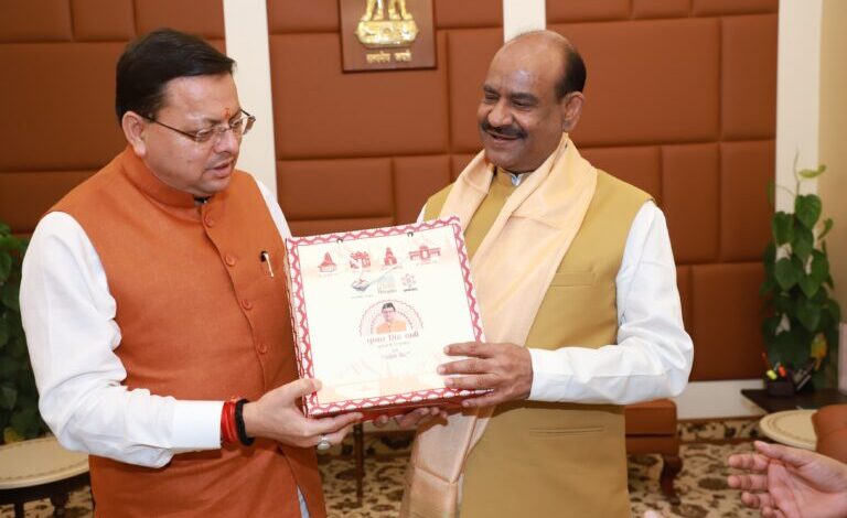 नई दिल्ली/देहरादून। मुख्यमंत्री पुष्कर सिंह धामी ने नई दिल्ली में लोकसभा अध्यक्ष ओम बिड़ला से शिष्टाचार भेंट की। इस अवसर पर मुख्यमंत्री ने बिड़ला को उत्तराखंड के चारधाम का प्रसाद भेंट किया और देवभूमि उत्तराखंड की समृद्ध सांस्कृतिक विरासत को दर्शाते हुए राज्य के विभिन्न स्थानीय उत्पाद भी उन्हें भेंट किए । 9मुख्यमंत्री ने कहा कि राज्य चारधाम, प्राकृतिक सुंदरता एवं आध्यात्मिकता का प्रतीक है। उन्होंने लोकसभा अध्यक्ष को राज्य में चल रहे विकास कार्यों, विशेष रूप से धार्मिक पर्यटन, सड़क संपर्क, स्वास्थ्य, और स्थानीय उत्पादों को वैश्विक पहचान दिलाने की दिशा में किए जा रहे प्रयासों की जानकारी भी दी।